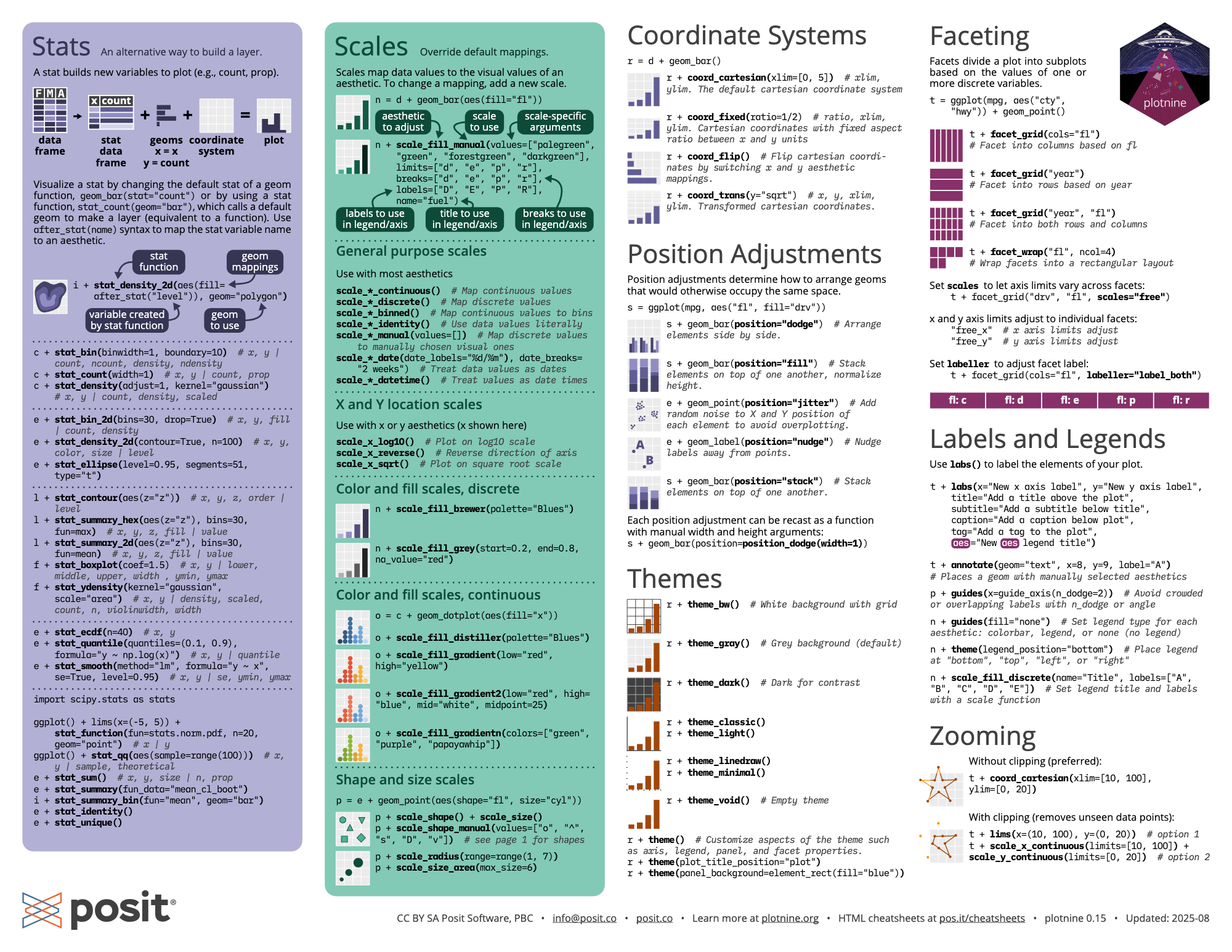 Of course, a cheatsheet is no substitute for good documentation. I also recommend checking out the new Plotnine guide by Michael Chow.